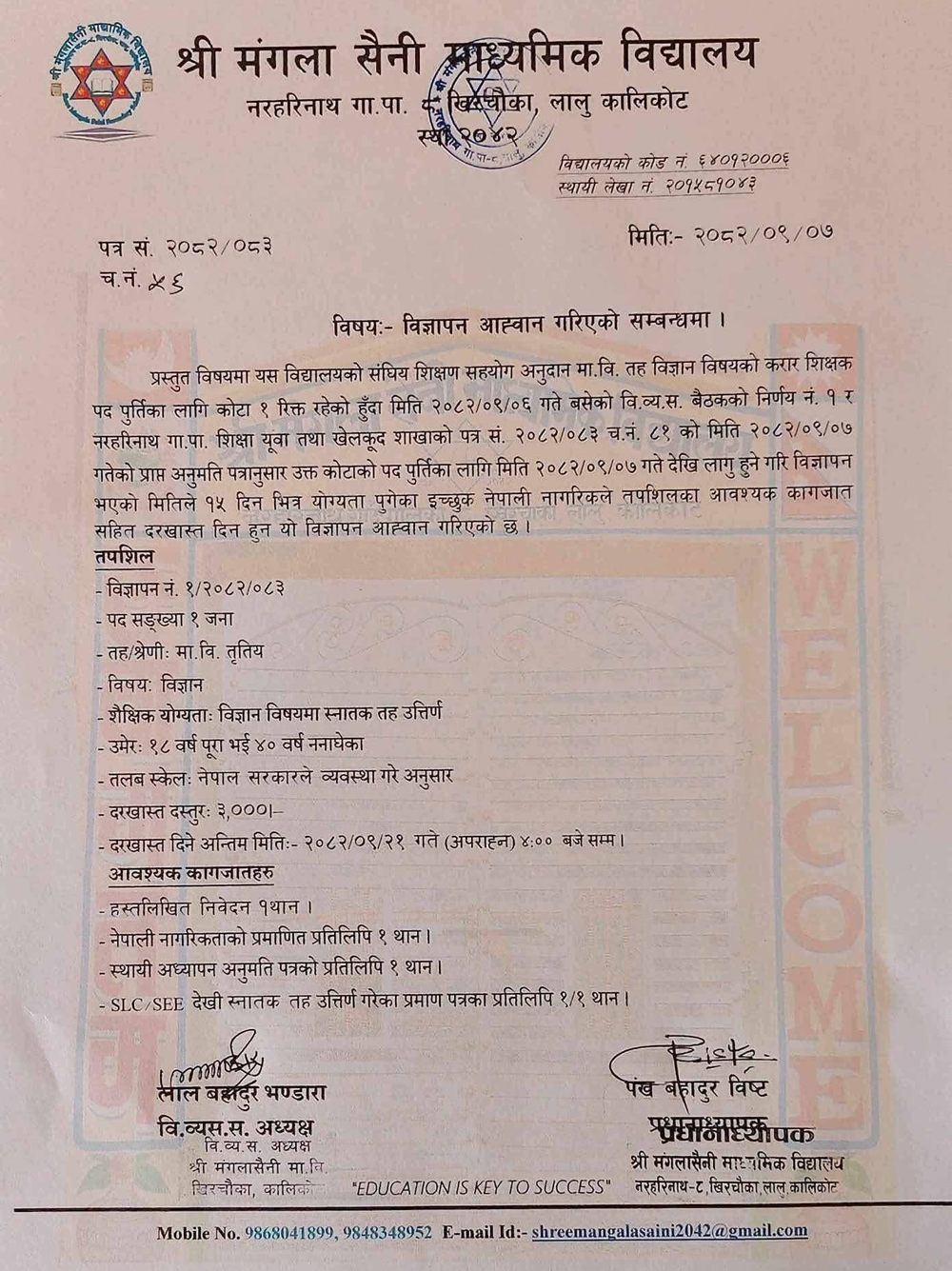 Mangala Saini Madhyamik Vidyalaya