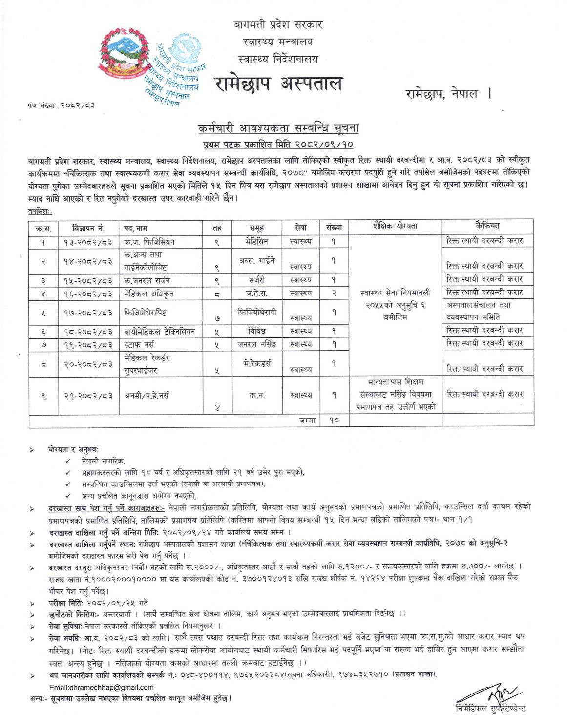 ANM, Medical Records Supervisor, Staff Nurse, Biomedical Technician, Physiotherapist, Medical Officer, General Surgeon, Physician Full Time Ramechhap Posted 3 months ago Applications have closed Ramechhap Hospital JOB OPPORTUNITY Tagged as: Ramechhap