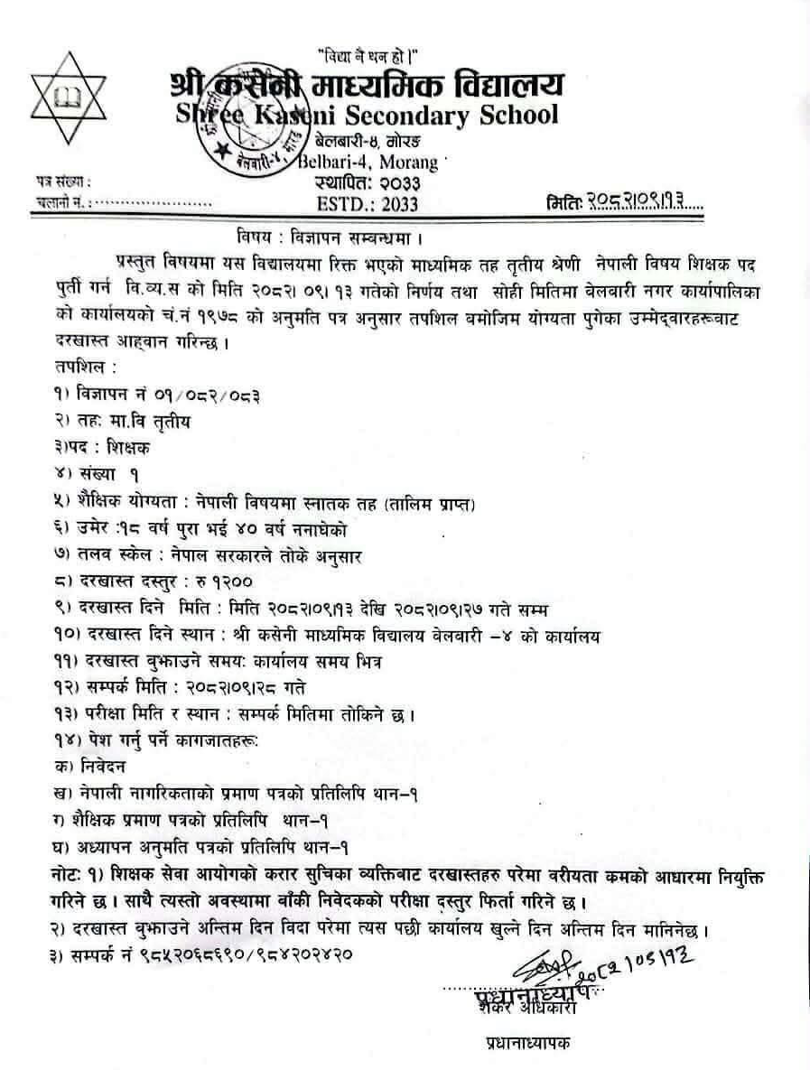 Shree Kaseni Madhyamik Vidyalaya