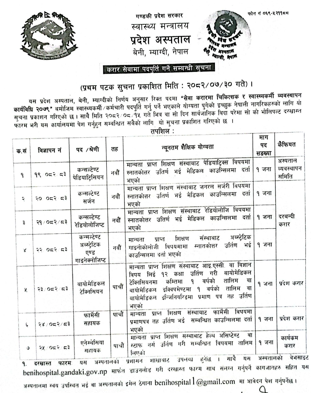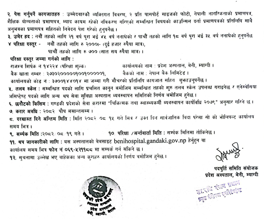 Anesthesia Assistant, Pharmacy Assistant, Biomedical Technician, Consultant Radiologist, Consultant Surgeon Full Time Beni, Myagdi Posted 1 day ago Closes: December 1, 2025 Website Province Hospital Beni, Myagdi JOB OPPORTUNITY