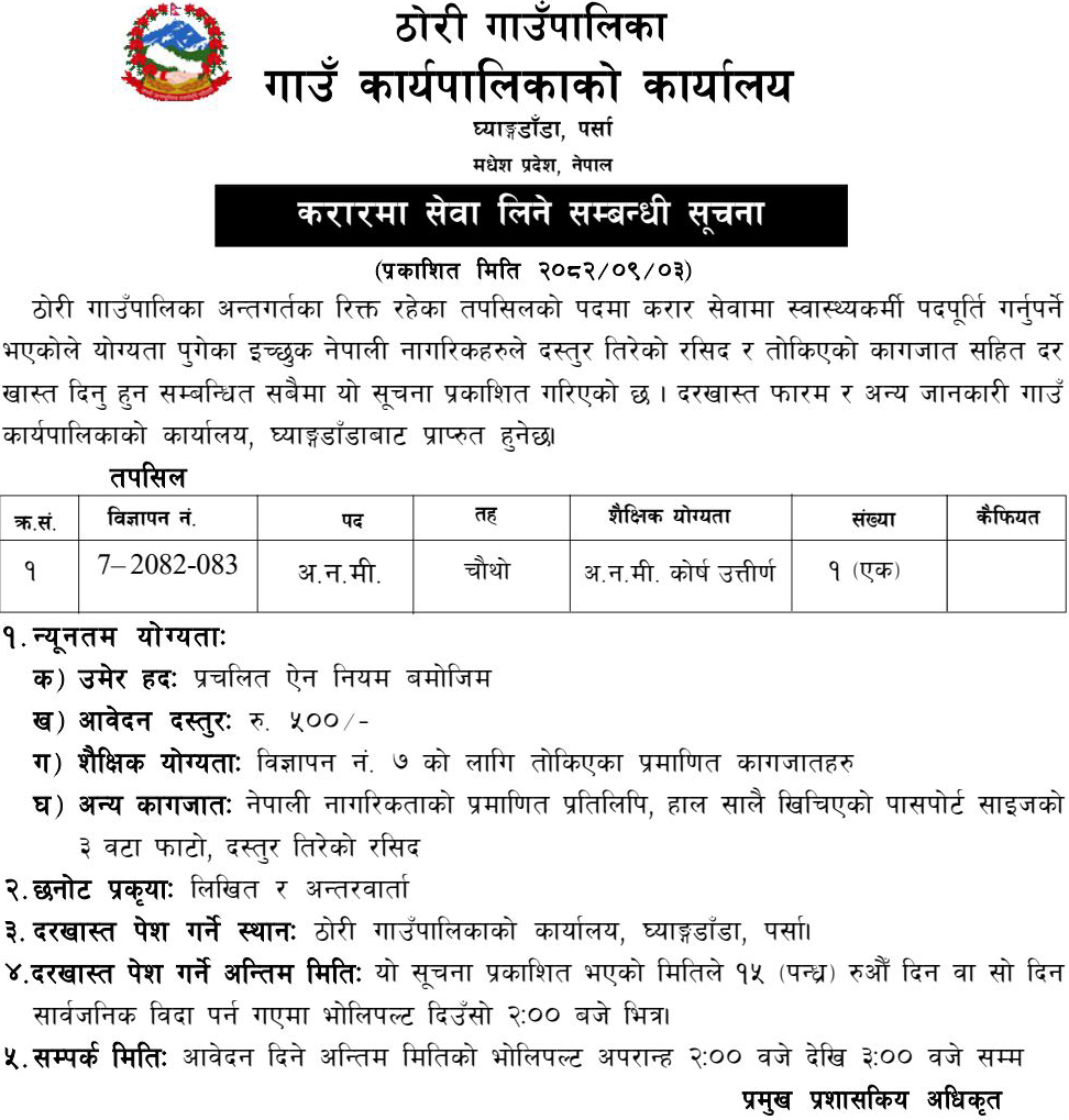 ANM Full Time Parsa Posted 2 months ago Applications have closed Website Thori Gaunpalika JOB OPPORTUNITY Position: ANM No. of Vacancy: 1 Location: Parsa Thori Gaunpalika Tagged as: Parsa