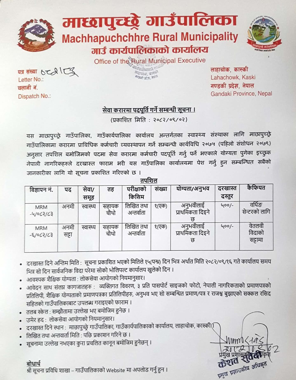 ANM Full Time Kaski Posted 3 months ago Applications have closed Website Machhapuchchhre Gaunpalika JOB OPPORTUNITY Tagged as: Kaski