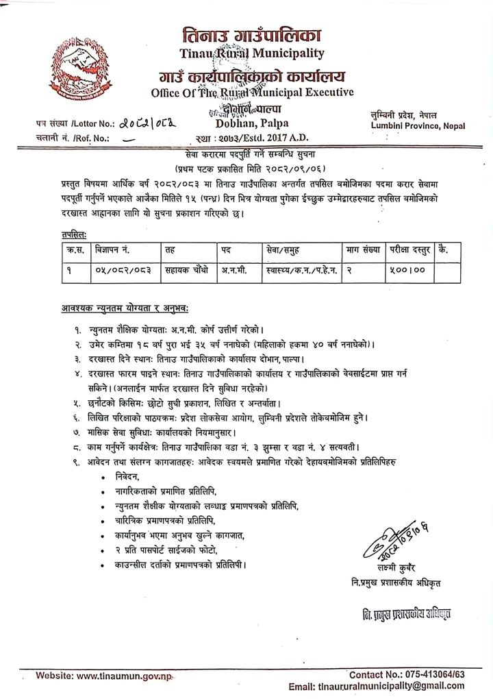 ANM Full Time Palpa Posted 2 months ago Applications have closed Website Tinau Gaunpalika JOB OPPORTUNITY Position: ANM No. of Vacancy: 2 Location: Palpa Tinau Gaunpalika Tagged as: Palpa
