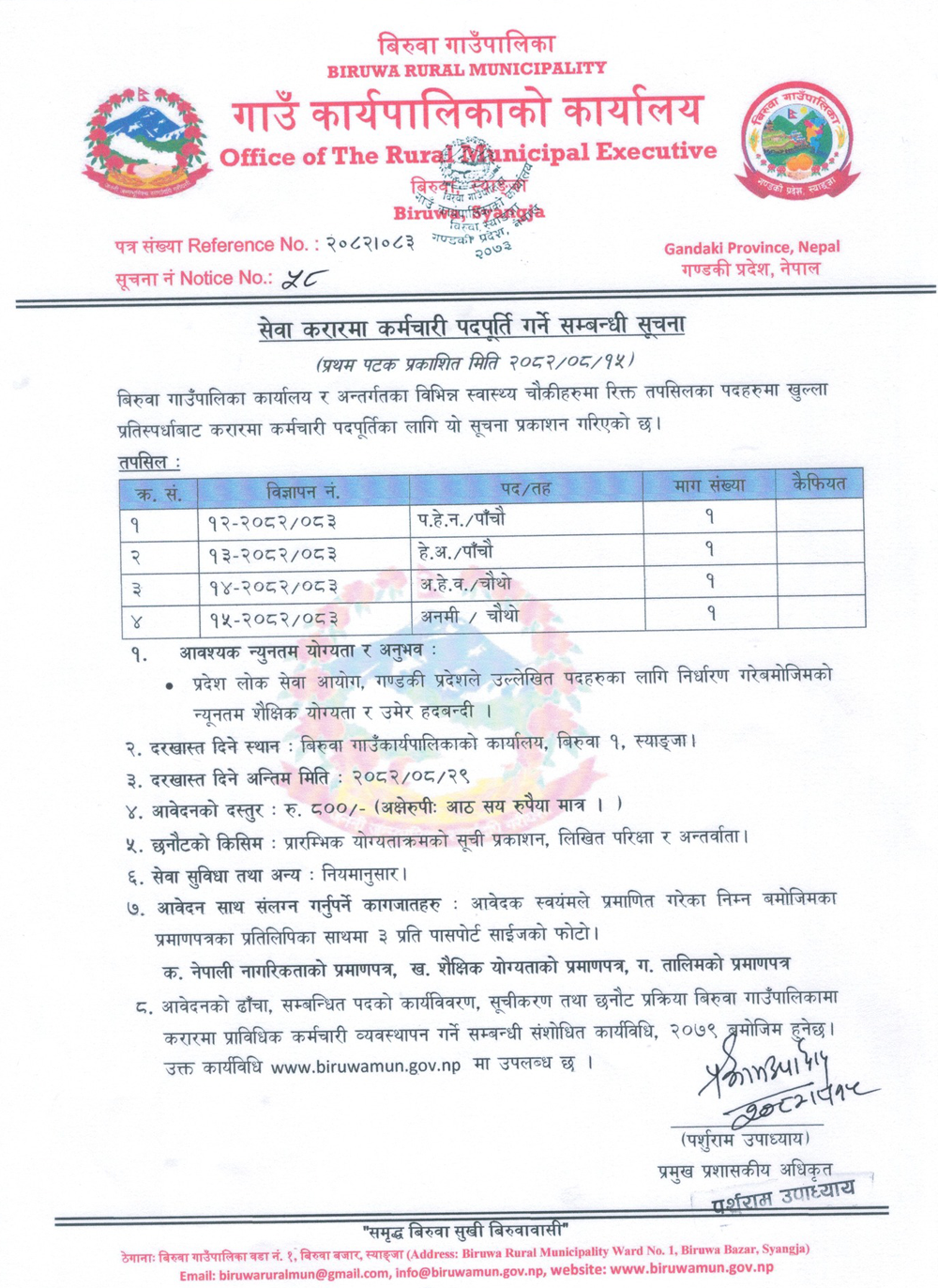 ANM, AHW, Health Assistant Full Time Syangja Posted 2 days ago Closes: December 15, 2025 Website Biruwa Gaunpalika JOB OPPORTUNITY Tagged as: Syangja