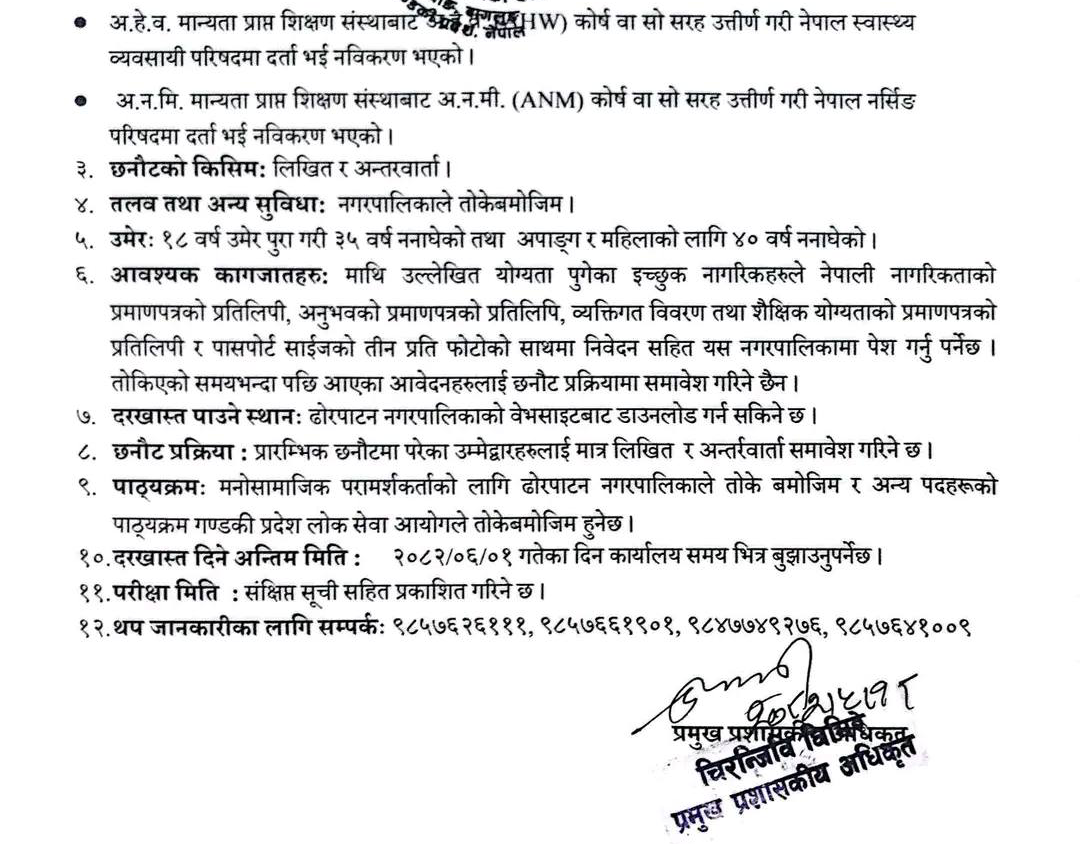 ANM, AHW, Lab Assistant, Psychosocial Counsellor, Public Health Officer