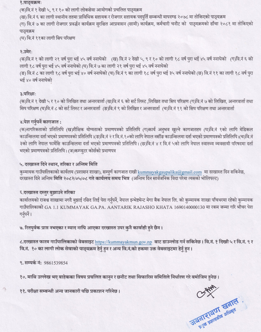 ANM, Amin, Field Assistant, Psychosocial Counselor, Technical Assistant, Lab Technician, Radiographer, Pharmacy Assistant, Staff Nurse, Medical Officer Full Time Panchthar Posted 2 months ago Applications have closed Website kummayak Gaunpalika JOB OPPORTUNITY Tagged as: Panchthar