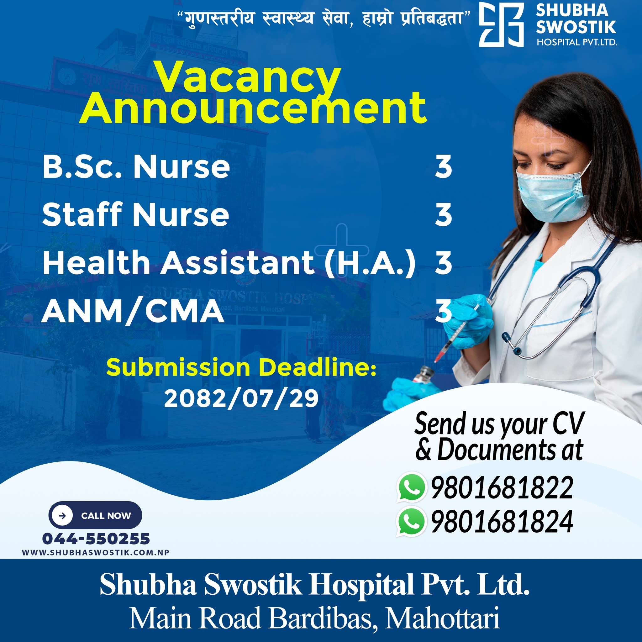 ANM/CMA, Health Assistant, Staff Nurse, B.Sc. Nurse