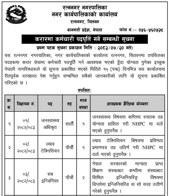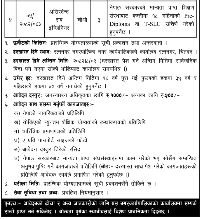 Assistant Sub-Engineer, Sub-Engineer, Lab Technician, Public Health Officer