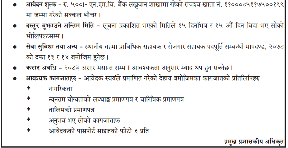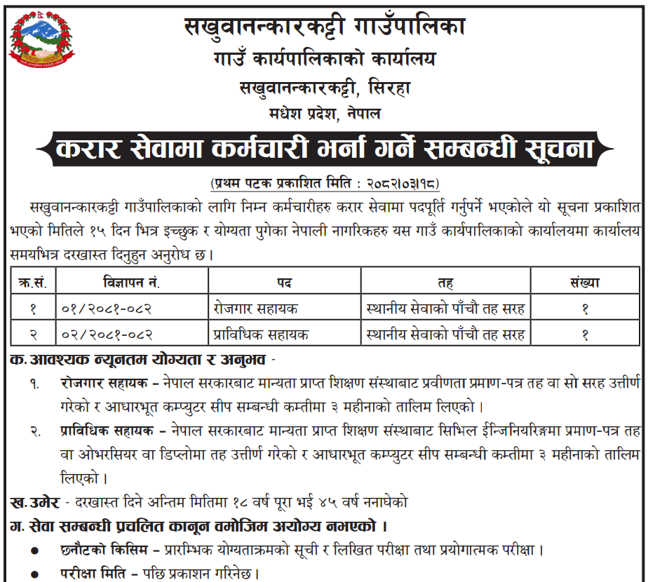 Employment Assistant, Technical Assistant Full Time Siraha Posted 3 months ago Applications have closed Website Sakhuwanankarkatti Gaunpalika JOB OPPORTUNITY