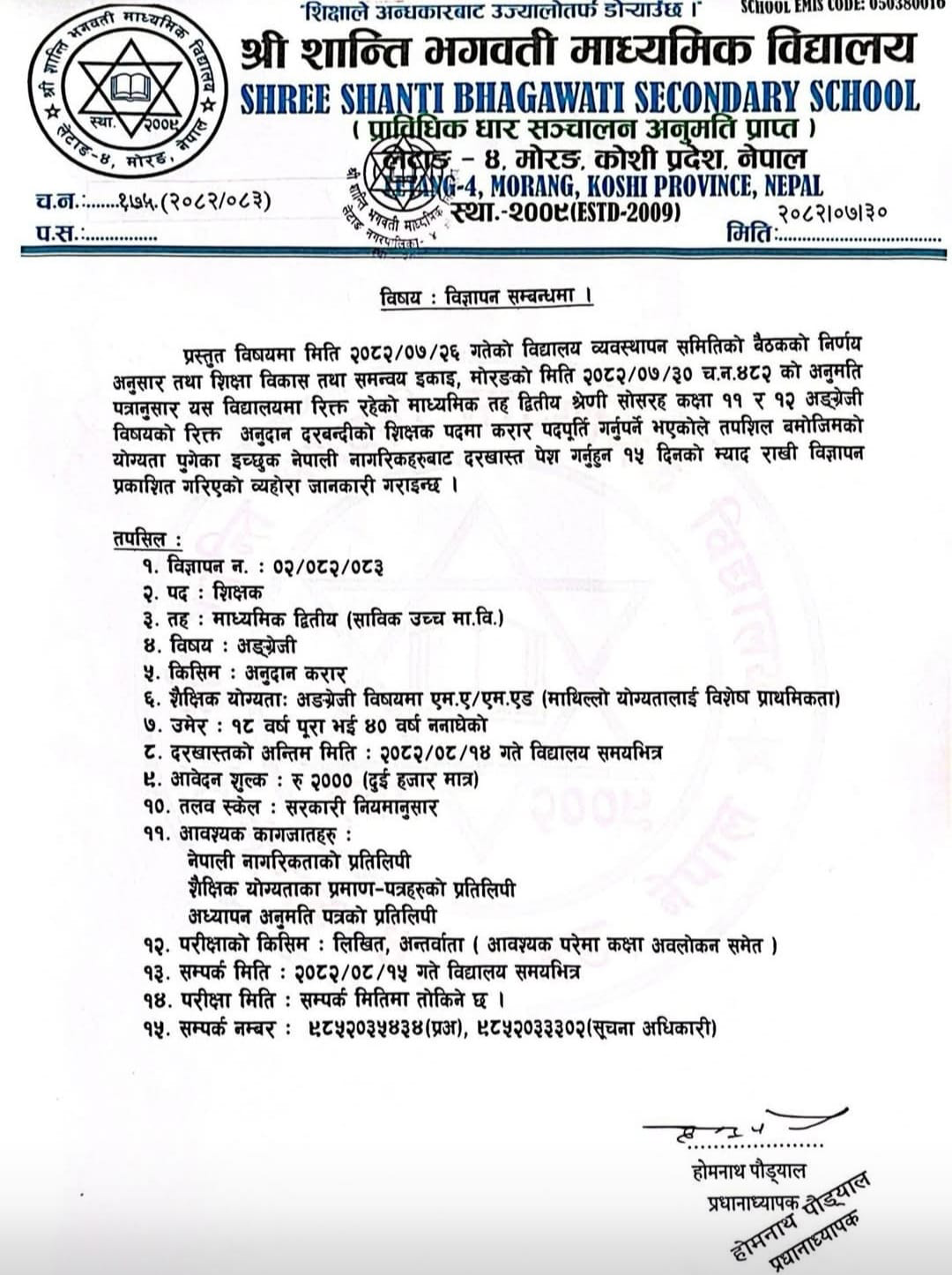 Shree Shanti Bhagawati Madhyamik Vidyalaya