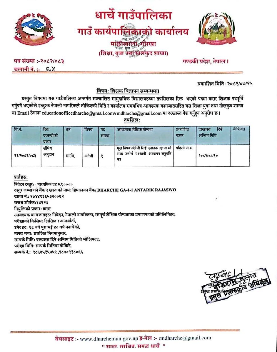 Email: educationofficedharche@gmail.com, rmdharche@gmail.com