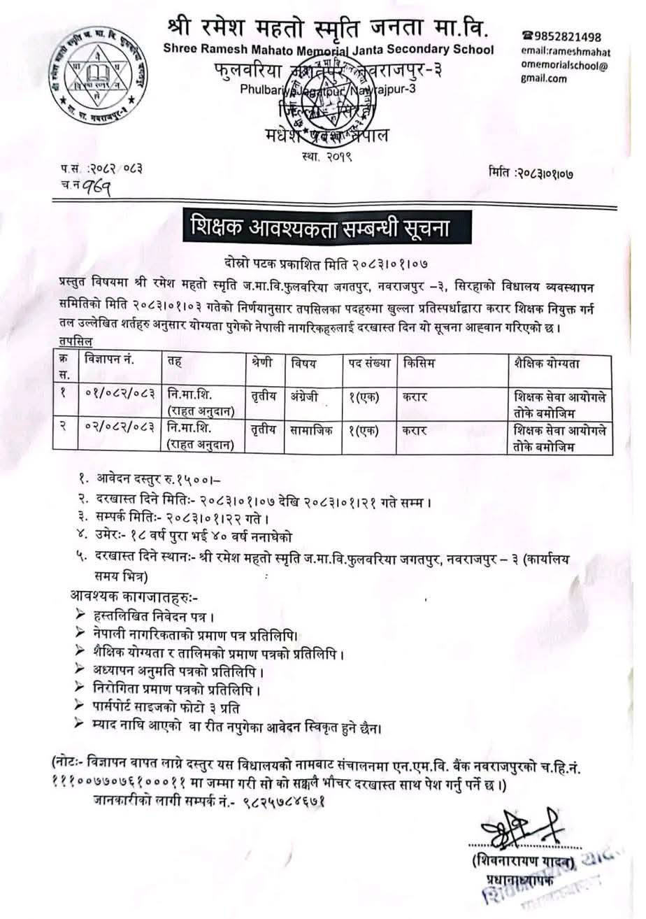 Shree Ramesh Mahato Memorial Janata Secondary School