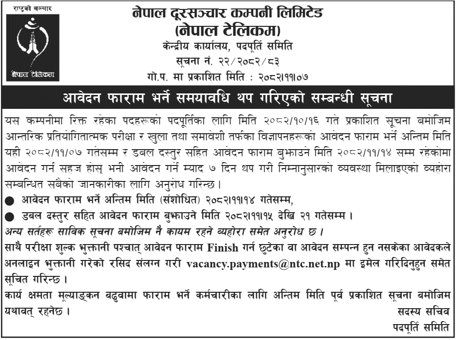 Job in Nepal Telecom – 80 Vacancies Full Time Anywhere Posted 4 weeks ago Applications have closed Website Nepal Telecom JOB OPPORTUNITY Source: Gorkhapatra, 30 January, 2025
