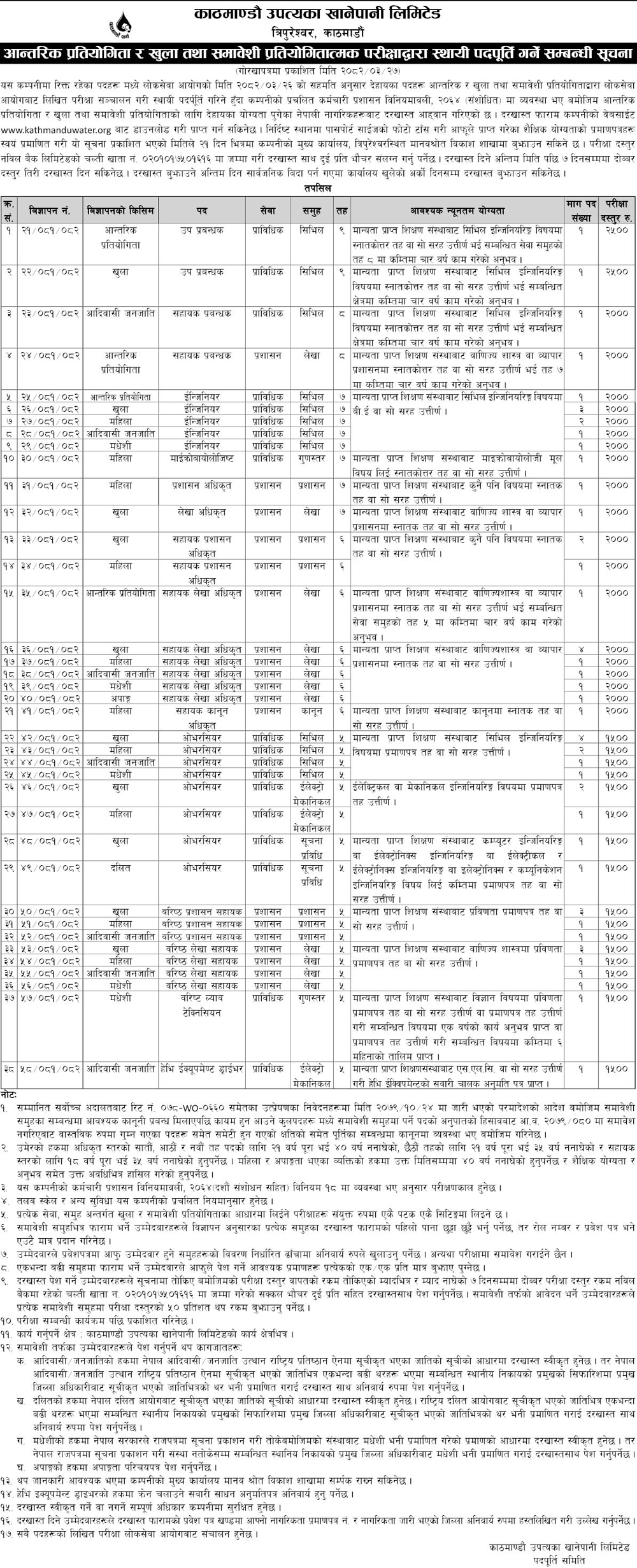 Job kathmandu upatyaka khanepani – 51 Vacancies Full Time Kathmandu Posted 3 months ago Applications have closed Website Kathmandu Upatyaka Khanepani Limited JOB OPPORTUNITY Source: Gorkhapatra, 11 July, 2025 Tagged as: Kathmandu