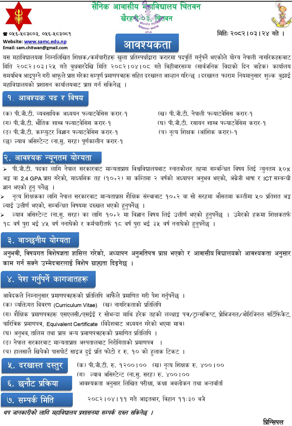 Position: Nepali Teacher