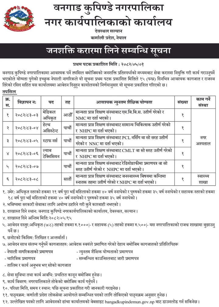 Lab Technician, Staff Nurse, Health Assistant, Medical Officer