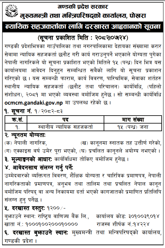 Local Judicial Facilitator – 15 Vacancies