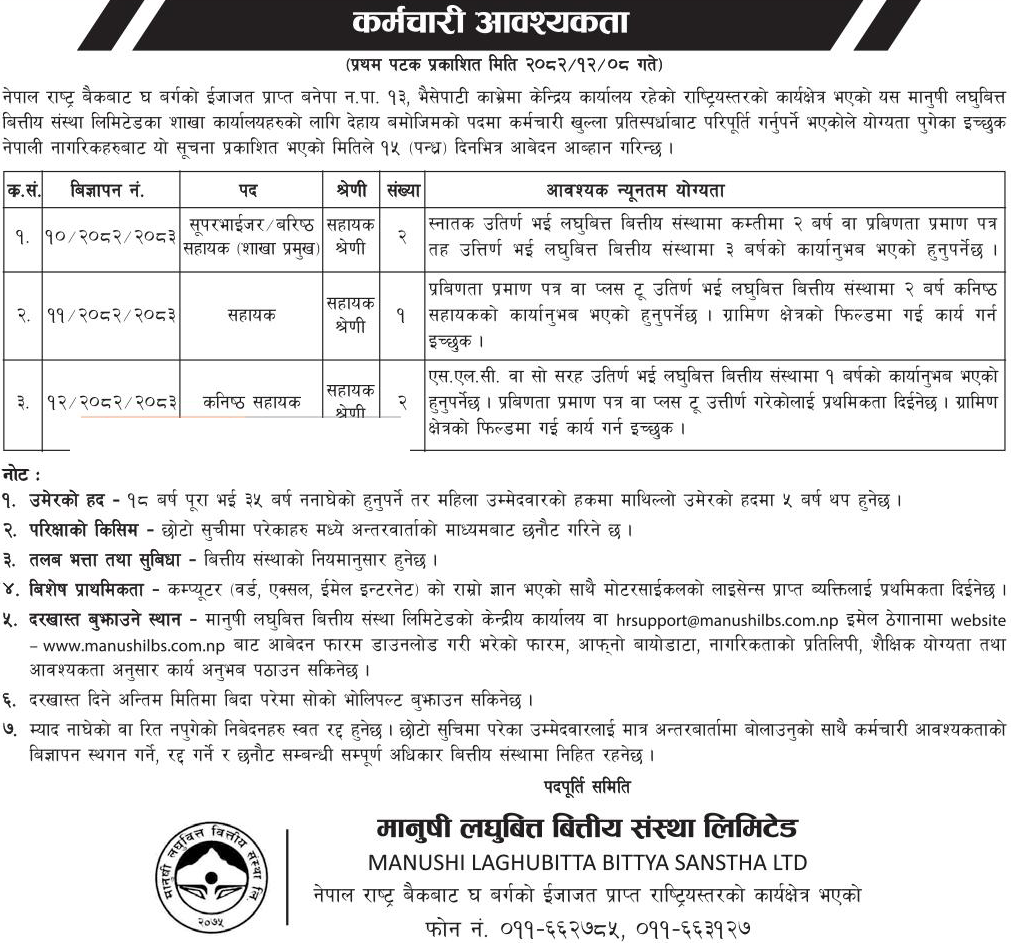 Email: hrsupport@manushilbs.com.np