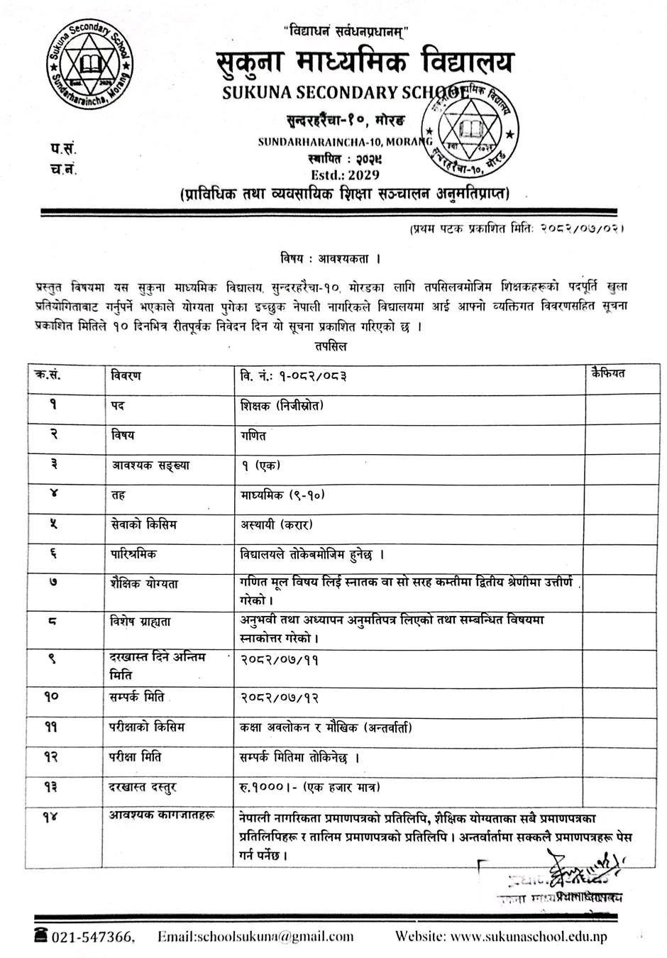 Email: schoolsukuna@gmail.com