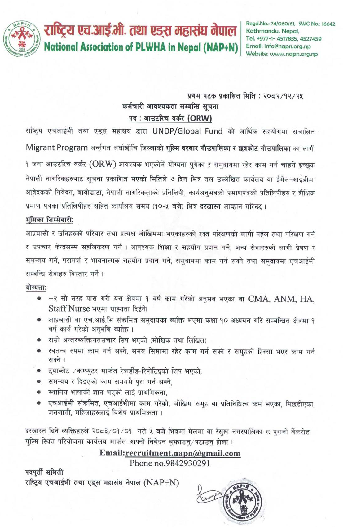 Email: recruitment.napn@gmail.com