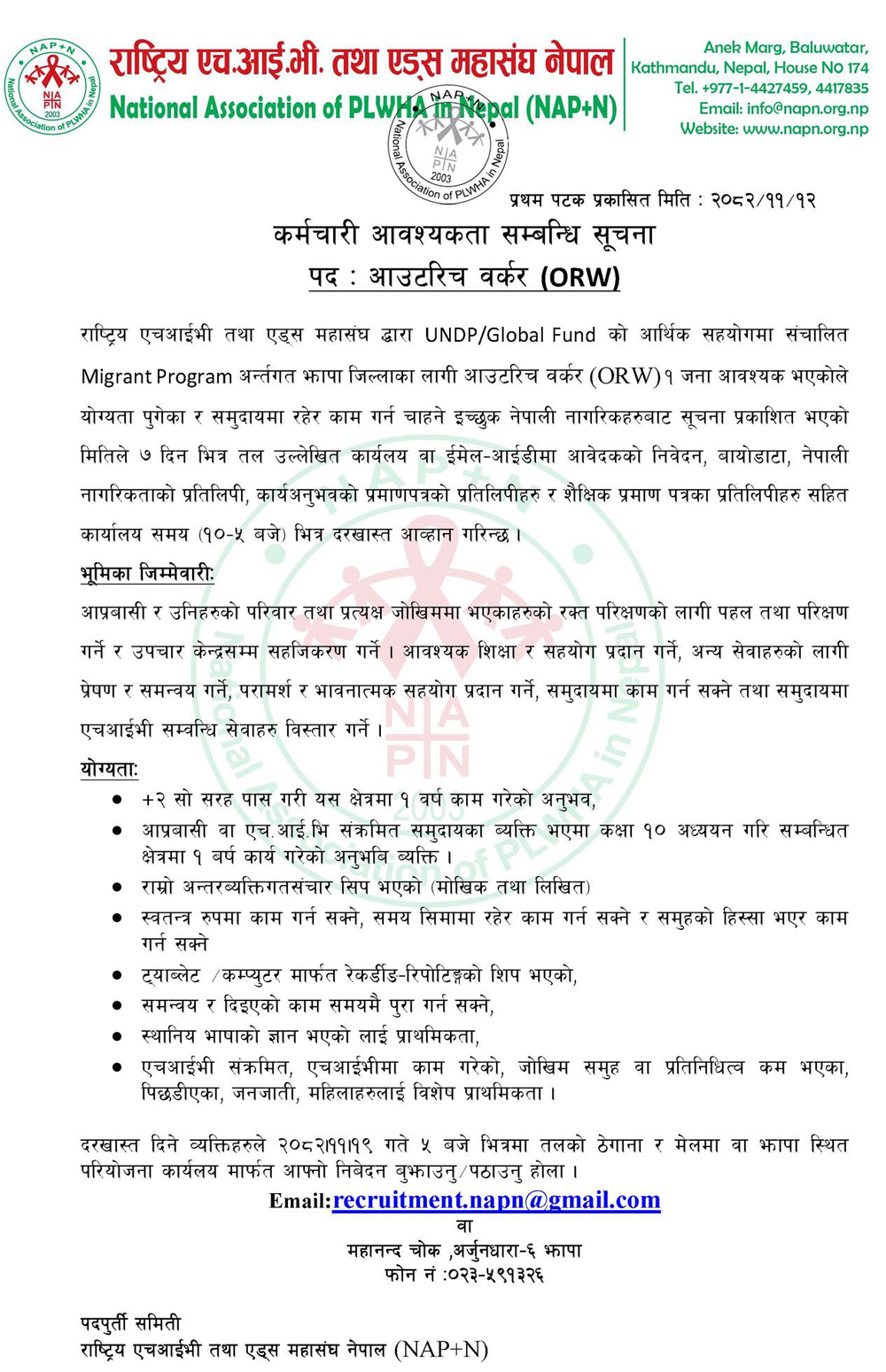Email: recruitment.napn@gmail.com
