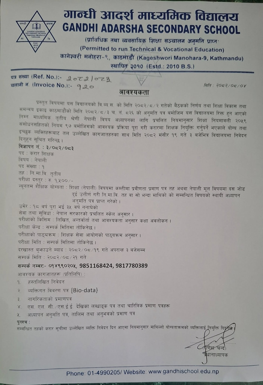Phone No.: 01-4990205, 9851168424, 9817780389
