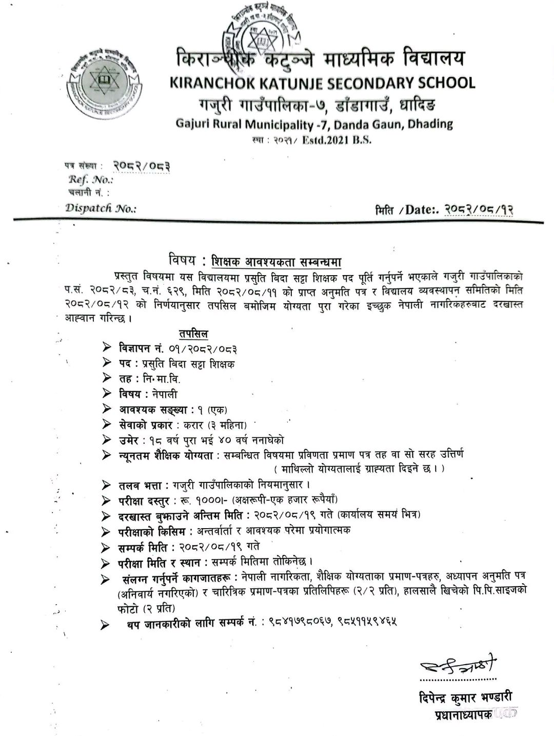 Kiranchok Katunje Madhyamik Vidyalaya