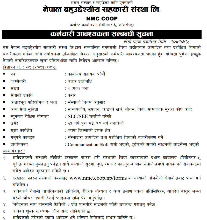Office Assistant Full Time Jhapa Posted 3 months ago Applications have closed Website Nepal Multipurpose Cooperative Society Limited JOB OPPORTUNITY