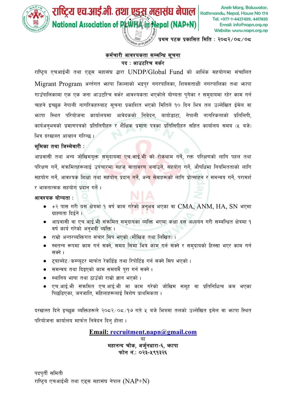 Email: recruitment.napn@gmail.com