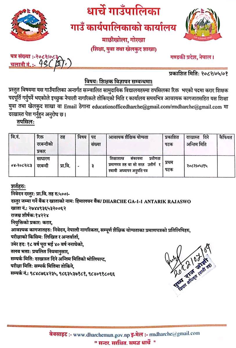 Email: educationofficedharche@gmail.com/ rmdharche@gmail.com
