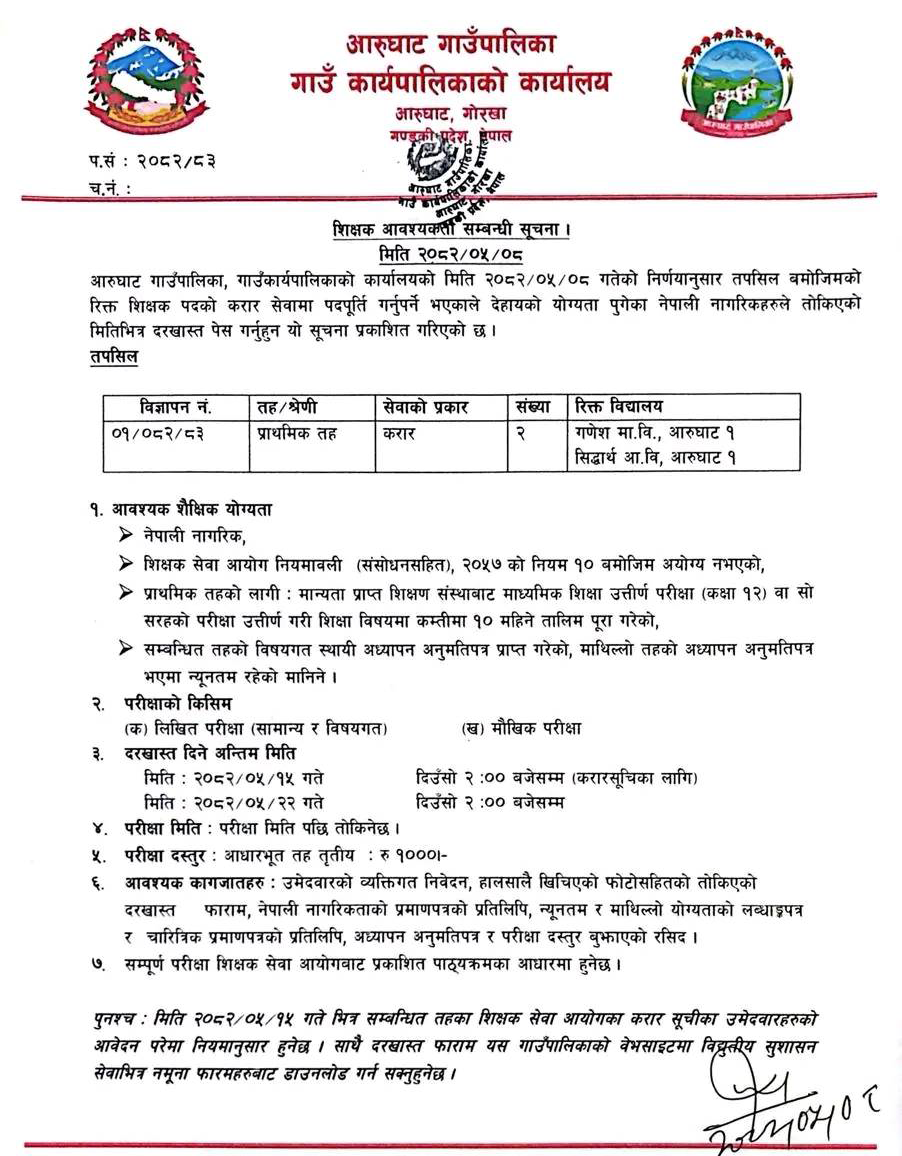 Primary Level Teacher Full Time Gorkha Posted 1 month ago Aarughat Gaunpalika JOB OPPORTUNITY Position: Teacher No. of Vacancy: 1 Level: Primary Location: Gorkha Aarughat Gaunpalika Tagged as: Gorkha