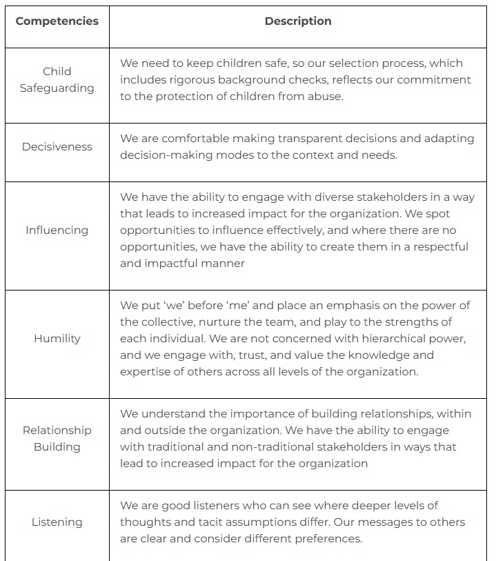 KEY BEHAVIOURAL COMPETENCIES (BASED ON SOSEC’S LEADERSHIP MODEL) FOR ALL POSITIONS: