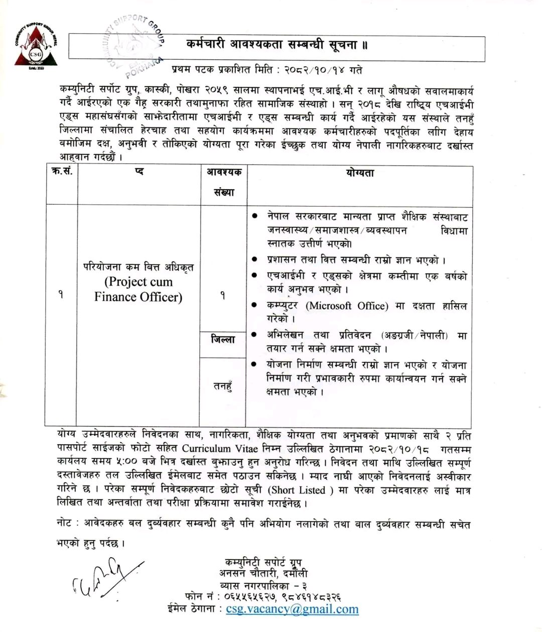 Email: csg.vacancy@gmail.com