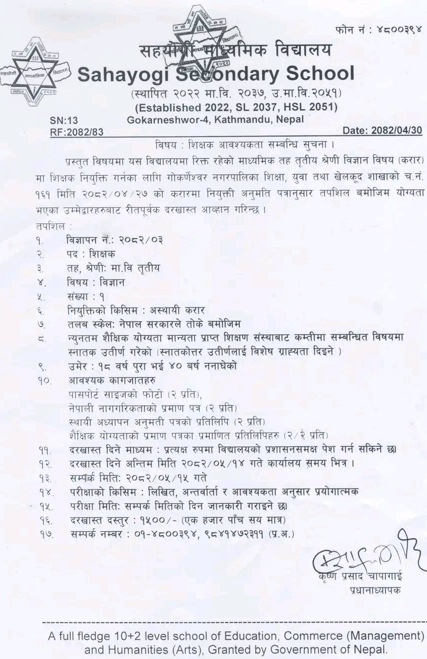 Phone No.: 01-4800394, 9841472311