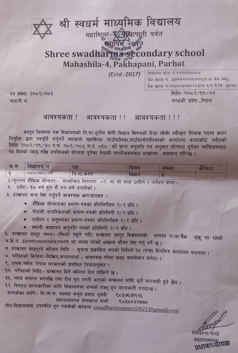 Shree Swadharma Madhyamik Vidyalaya