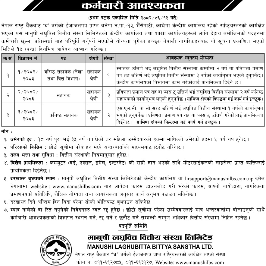 Email: hrsupport@manushilbs.com.np
