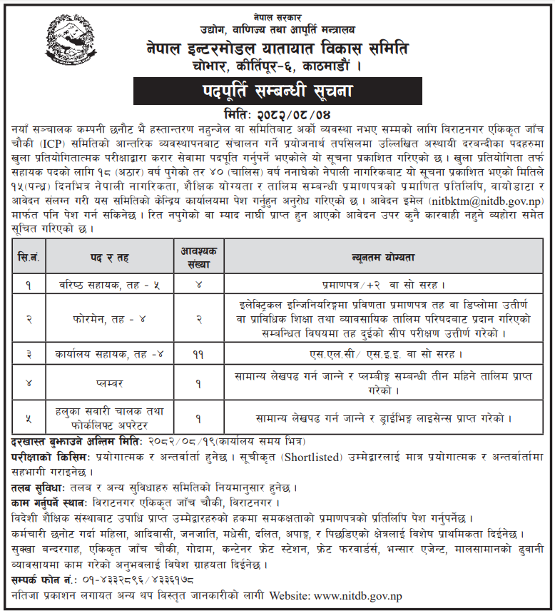 Senior Assistant, Office Assistant, Plumber, Foreman