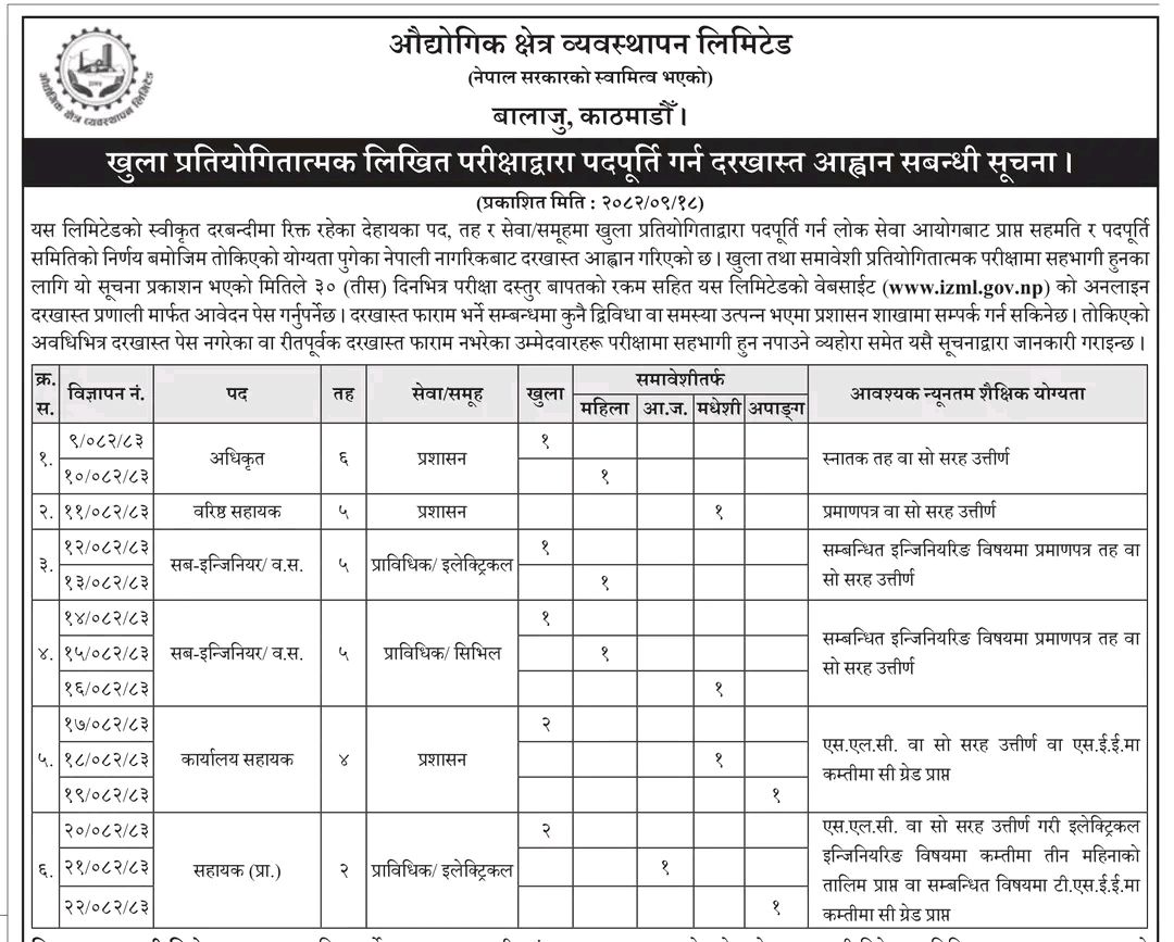 Senior Assistant, Officer, Office Assistant, Sub-Engineer, Assistant Full Time Kathmandu Posted 7 days ago Closes: February 7, 2026 Website Industrial Zone Management Limited JOB OPPORTUNITY Tagged as: Kathmandu