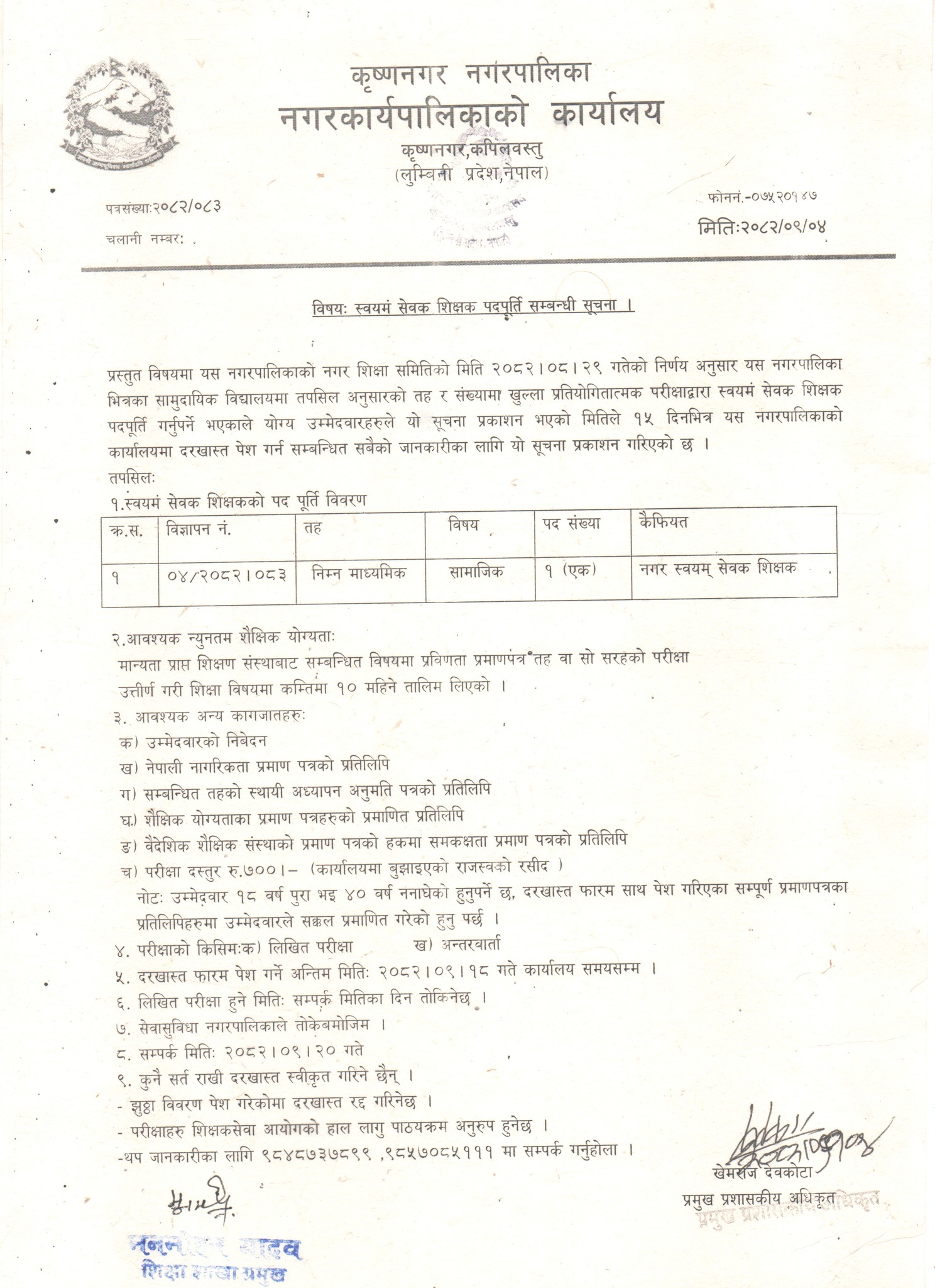 No. of Vacancy: 1