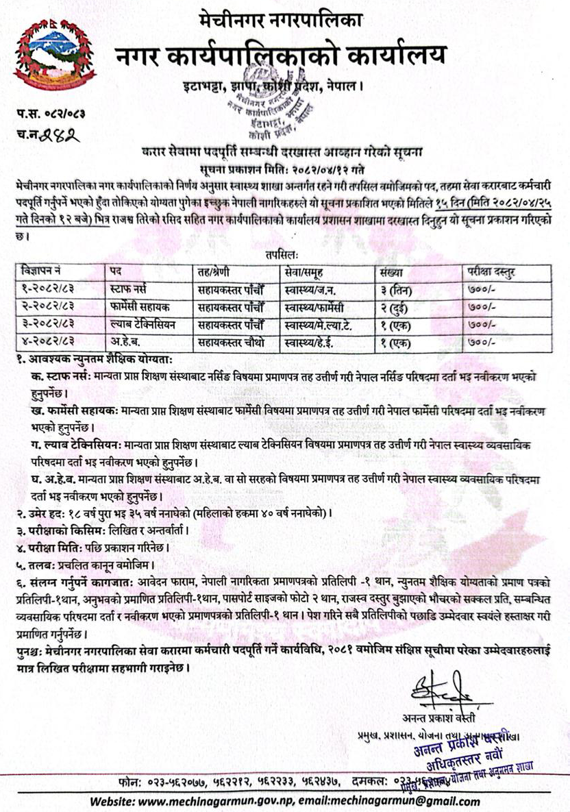 Staff Nurse, Pharmacy Assistant, AHW, Lab Technician