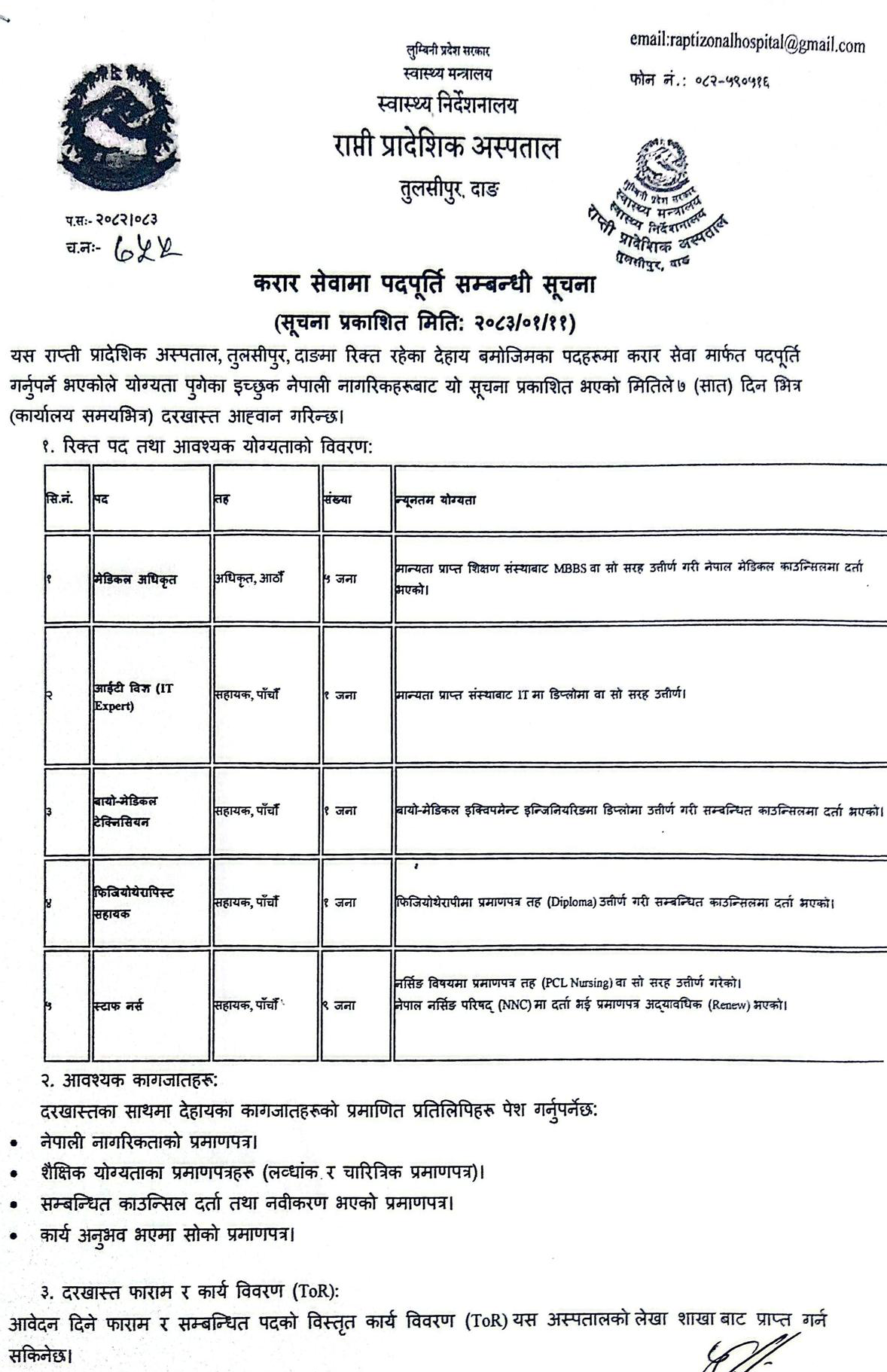 Staff Nurse, Physiotherapist, Biomedical Technician, IT Expert, Medical Officer