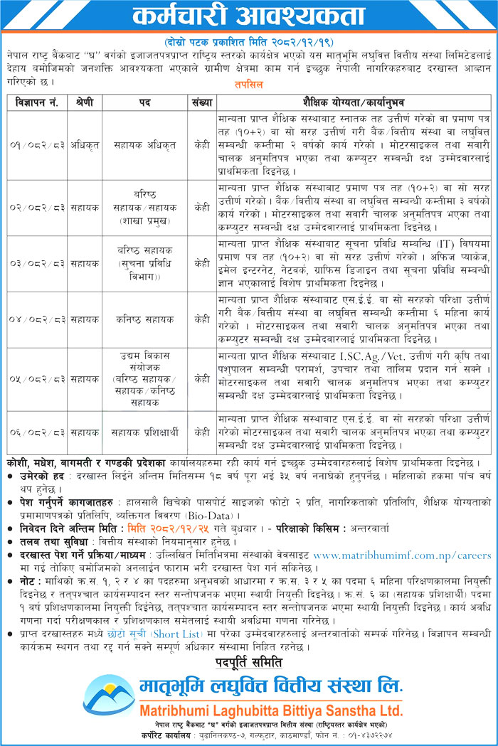 To apply for this job please visit matribhumimf.com.np.