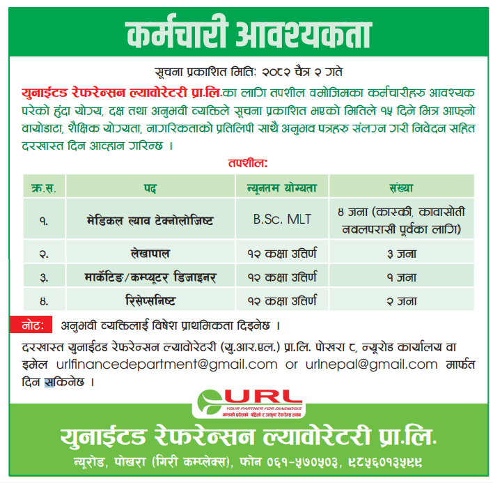 Email: urlfinancedepartment@gmail.com, urlnepal@gmail.com