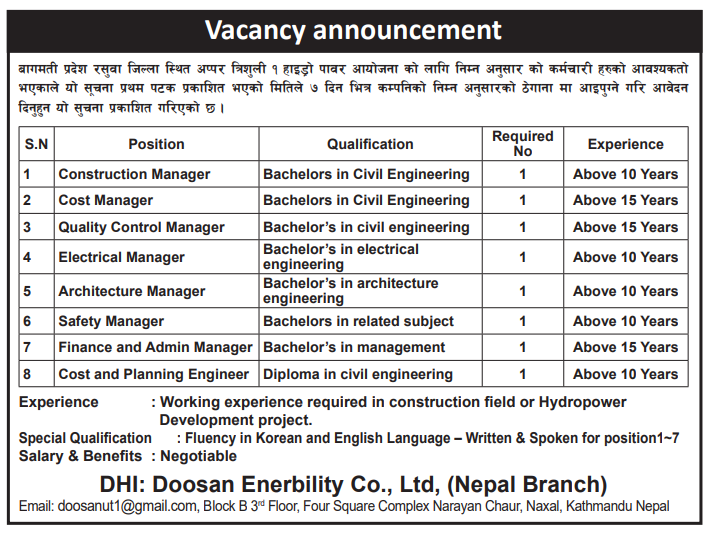 DHI: Doosan Enerbility Co. Ltd, (Nepal Branch)